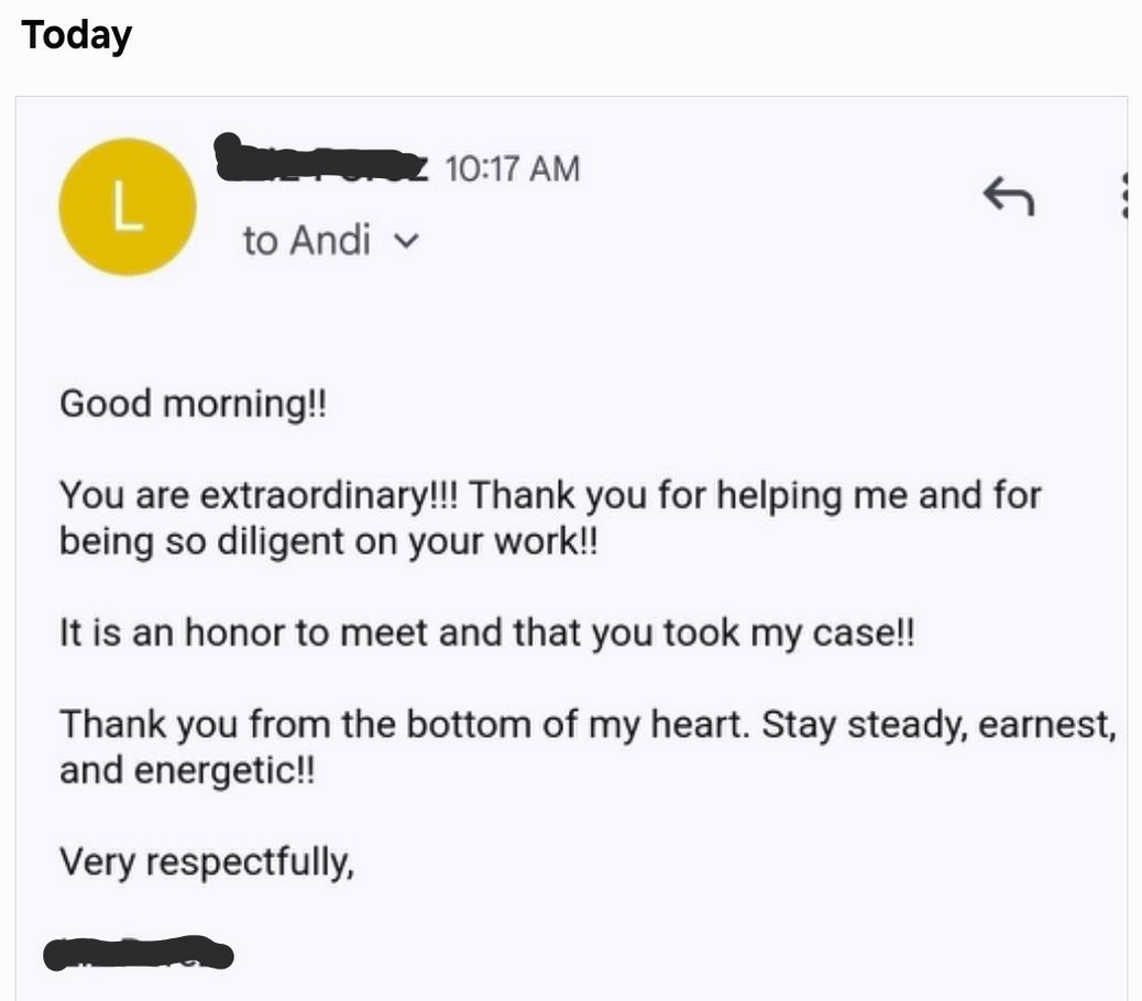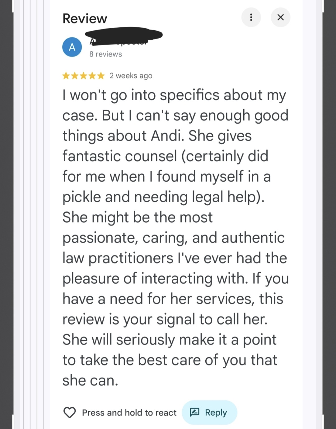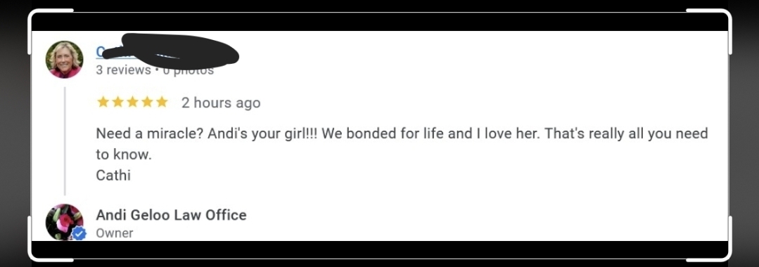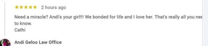 https://www.facebook.com/AndiGeloo or email andigeloolaw@gmail.com or text 703.585.3323